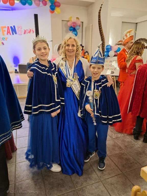 mit Kinderprinzenpaar und Begleitern aus.
